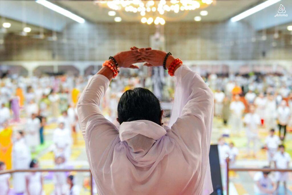 アンマの直接のガイダンスによる、ハート中心のヨーガ。どの人にも届くヨーガ