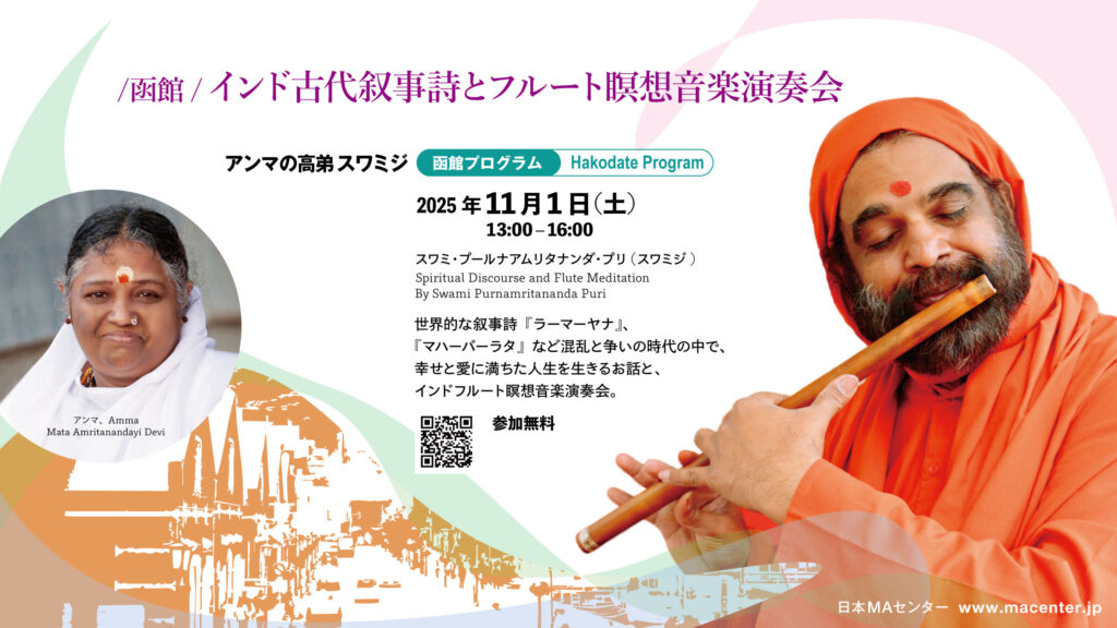 世界的な叙事詩『ラーマーヤナ』、『マハーバーラタ』など混乱と争いの時代の中で、幸せと愛に満ちた人生を生きるお話と、インドフルート瞑想音楽演奏会。世界の平和をともに祈りましょう。